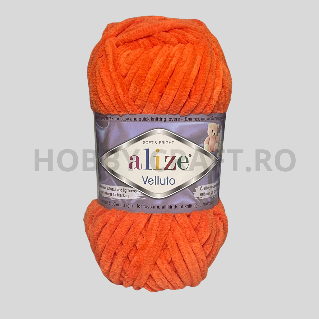 Alize Velluto este un fir antialergenic plusat, catifelat, moale si placut la atingere. Este ideal pentru tricotarea/crosetarea de paturici pentru bebelusi, jucarii amigurumi, jachete mai groase sau covoare.
